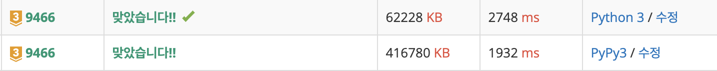 아 그리고 pypy3와 python3는 차이가 좀 있으므로 유의하자..!