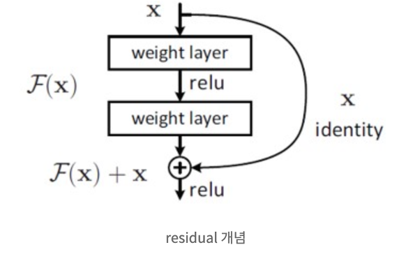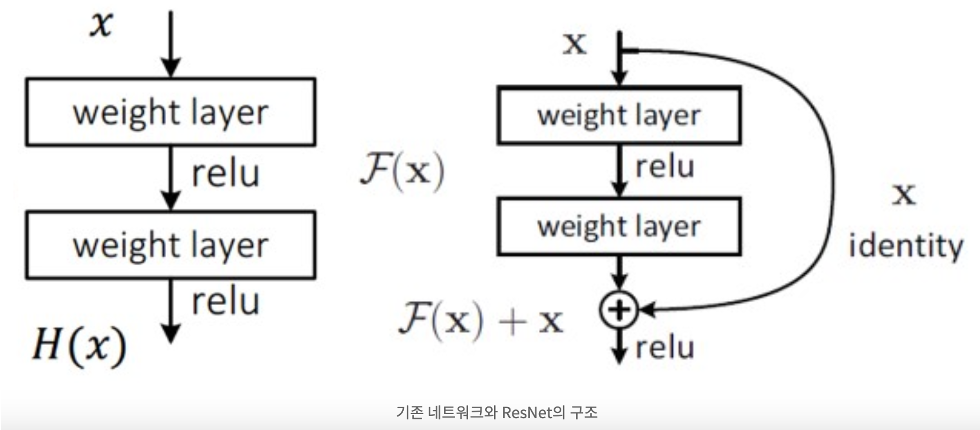 여기서 ResNet은 H(x)가 아닌 출력과 입력의 차인 H(x) - x를 얻도록 목표를 수정한다.