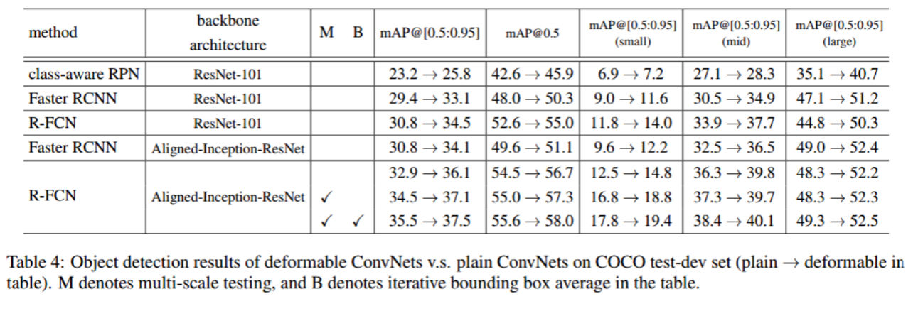 일정하게 샘플링 패턴이 고정되어 있지 않고, 큰 object에 대해서는 receptive field가 더 커진 것을 확인할 수 있습니다.