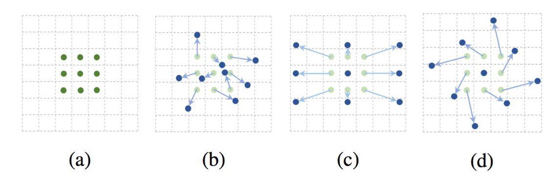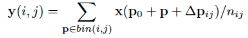 offset이 추가 되어 좀 더 넓은 범위의 grid 영역에서 특징을 추출합니다. 이 때 문제는 offset은 실수이기 때문에 해당 픽셀값을 찾을 수 없다는 것이고, 문제는 쌍선형 보간법을 통해 계산합니다. (쌍선형 보간법에 대해서는 구글링..)