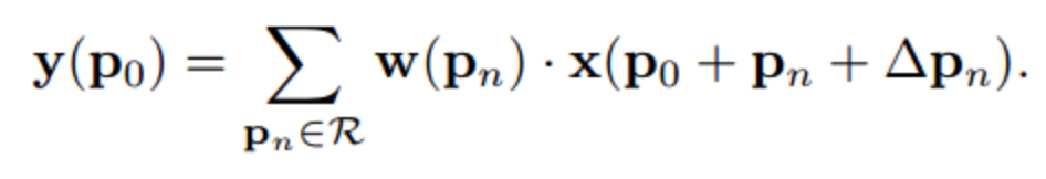 즉, conv layer로 offset을 계산한 뒤에, 이 offset 정보를 추가하여 conv 연산을 수행합니다.
