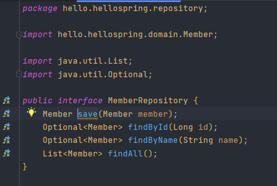 리포지토리 - MemberRepository(interface)