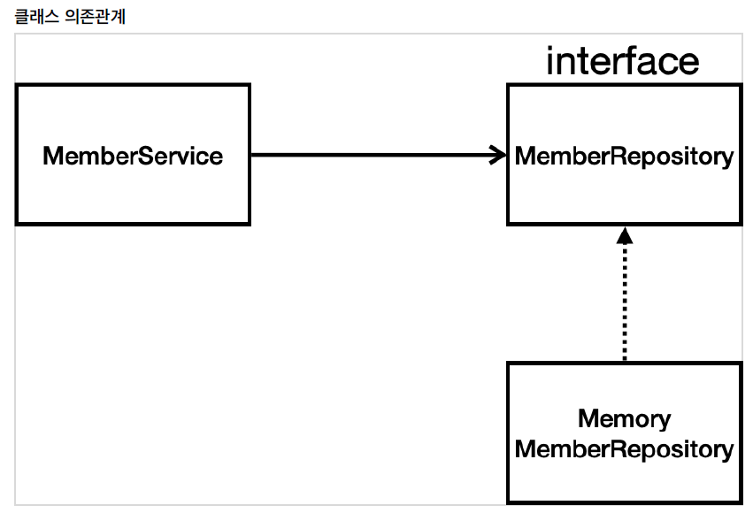 - 아직 데이터 저장소가 선정되지 않아서, 우선 인터페이스로 구현 클래스를 변경할 수 있도록 설계(MemberRepository)