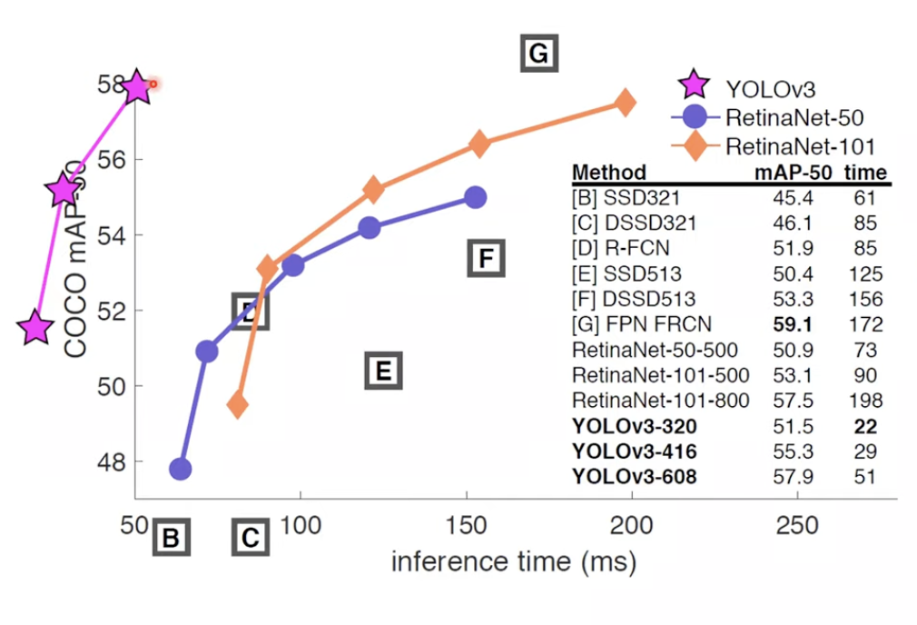- 또한 작은 객체는 다른 모델들도 잘 탐지하지 못하는데, 의외로 v3가 큰 물체에 대해서 다른 모델들보다 성능이 낮음을 볼 수 있습니다.