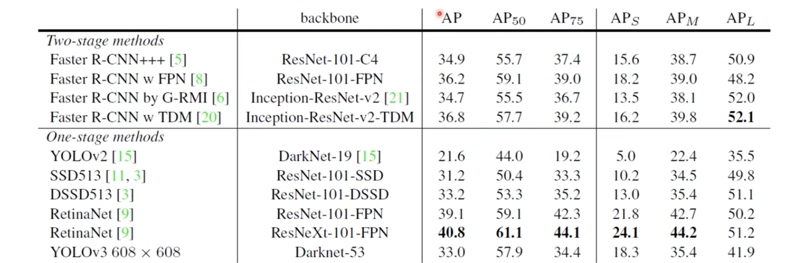 - 다만, AP50 (IOU threshold가 0.5) 에서는 준수한 성능을 보입니다.