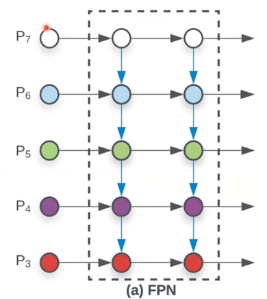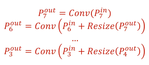 Pin 벡터들은 level 3~ 7의 feature level을 가지는데, 각각 resolution이 input image의 1/2^i 이다. 예를 들어, input image가 640x640일 때, Pin level3의 resolution은 640 / 2^3 = 80x80이다.
