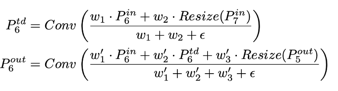 BiFPN : Width = 64 * 1.35^Φ, Depth = 2 + Φ