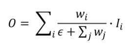 : weight / (sum all weights + epsilon), 분자 Wi는 ReLU func에 의해 >=0 임을 보장받는다.