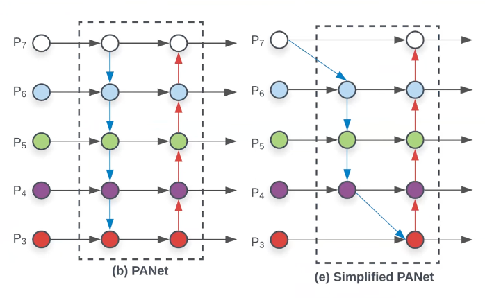 - PANet(Pyramid Aggregation Net) adds an extra bottom-up path