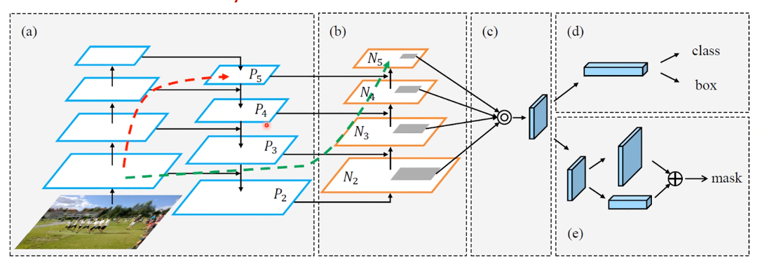 앞서 말했듯, PANet은 FPN 구조에 bottom-up path를 추가한 구조이다.