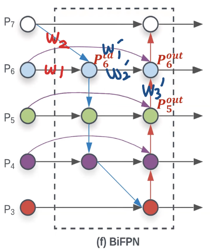 BiFPN에서는 추가적인 엣지를 하나 더 사용했는데, 이유는 더 많은 fusion을 할수록 성능이 좋아지니까 input node를 가져다 사용한 것이라고 한다.
