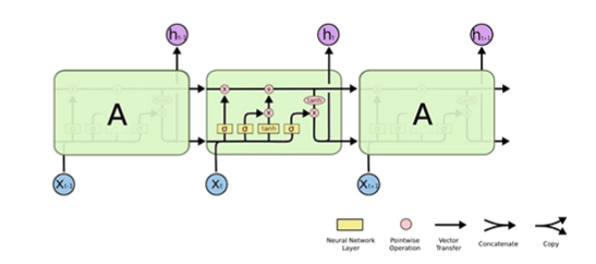 왼쪽면에서, 왼쪽 상단의 입력은 previous cell state 이고, 하단의 입력은 previous output(=hidden state).